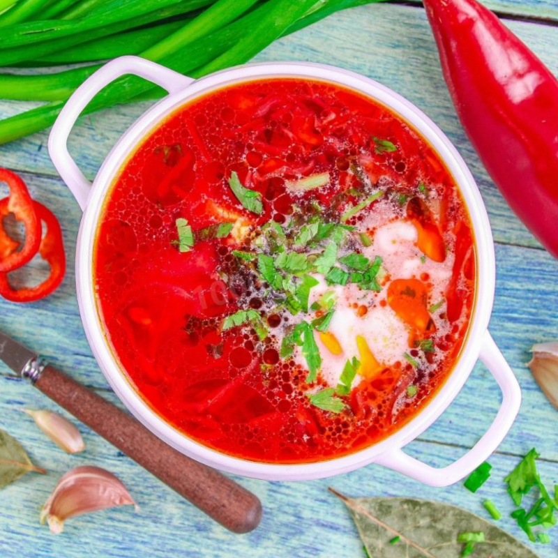 «Борщ” с говядиной: Классика в новом формате — сытный, пикантный и невероятно вкусный.