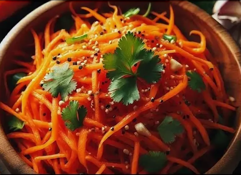 МОРКОВКА «ПО-КОРЕЙСКИ», уникальное блюдо, которое сразу делает ваш стол праздничным! В этой морковке «ПО-КОРЕЙСКИ», все специи на своих местах: мелко порубленный чеснок, кунжутные зерна, заварные семена кориандра, не навязчивая острота хлопьев чили!Букет специй, будоражат ваши вкусовые рецепторы и конечно же, это безумно вкусно!